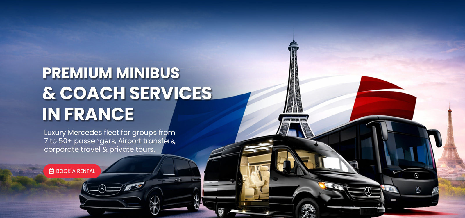 French Minibus provides professional, comfortable, and reliable group transportation services throughout France. We specialize in delivering tailored travel solutions for tourists, corporate clients, event organizers, and private groups, ensuring every journey is smooth and stress-free. Our modern Mercedes fleet is designed to meet all group sizes. The Mercedes Viano offers executive comfort for up to 7 passengers, ideal for airport transfers and VIP travel. The Mercedes Sprinter accommodates up to 20 passengers, perfect for business trips and city tours. For larger groups, the Mercedes Tourismo coach carries up to 55 passengers with spacious seating and advanced safety features. All vehicles are maintained to the highest standards to guarantee safety, cleanliness, and performance. Our experienced drivers are professional, punctual, and committed to exceptional service. Whether you need airport transfers, corporate transport, private tours, or long-distance travel, we ensure reliability and comfort at every stage. At French Minibus, our mission is simple: to provide safe, elegant, and dependable transportation across France, delivering a premium travel experience for every group.